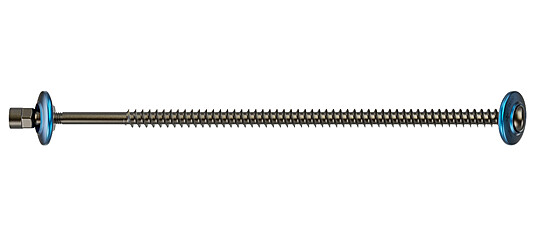 Een lange geleidedraad, die aan beide zijden toegankelijk is, zorgt voor een veilige hantering van het systeem in combinatie met gekanuleerde instrumenten en implantaten.