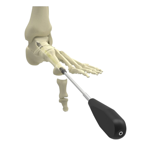 Met de TWIN-CF stabilisatieschroef kan via de instrumentenset een traploze compressie worden gerealiseerd. De gecreëerde compressie wordt vervolgens door de schroef gestabiliseerd.